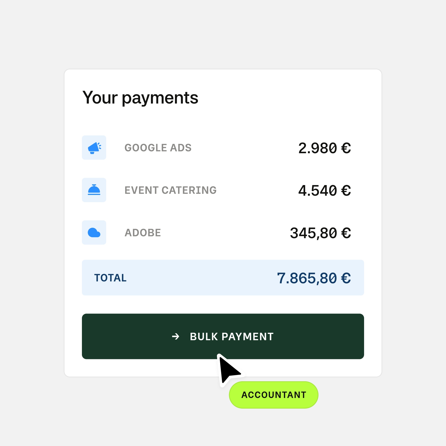 Bank transfers integrated with your Accounts Payable and Reimbursement workflows.