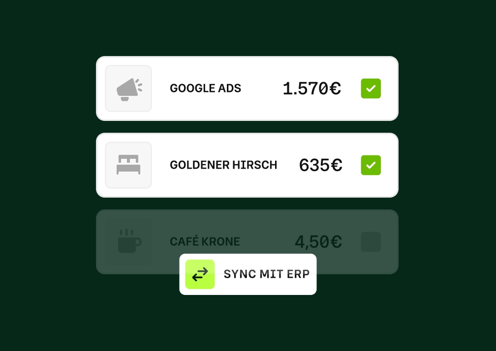 Vorkontierte Ausgaben und Rechnungen werden über Integrationen direkt mit deiner Buchhaltungs- oder ERP-Software synchronisiert.