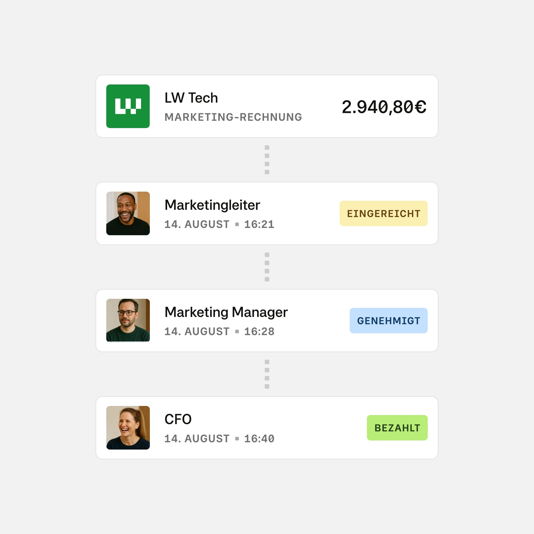 Behalte die volle Kontrolle über deine Finanzen durch Budgetverfolgung, Ausgabentransparenz und flexible Freigabeprozesse.