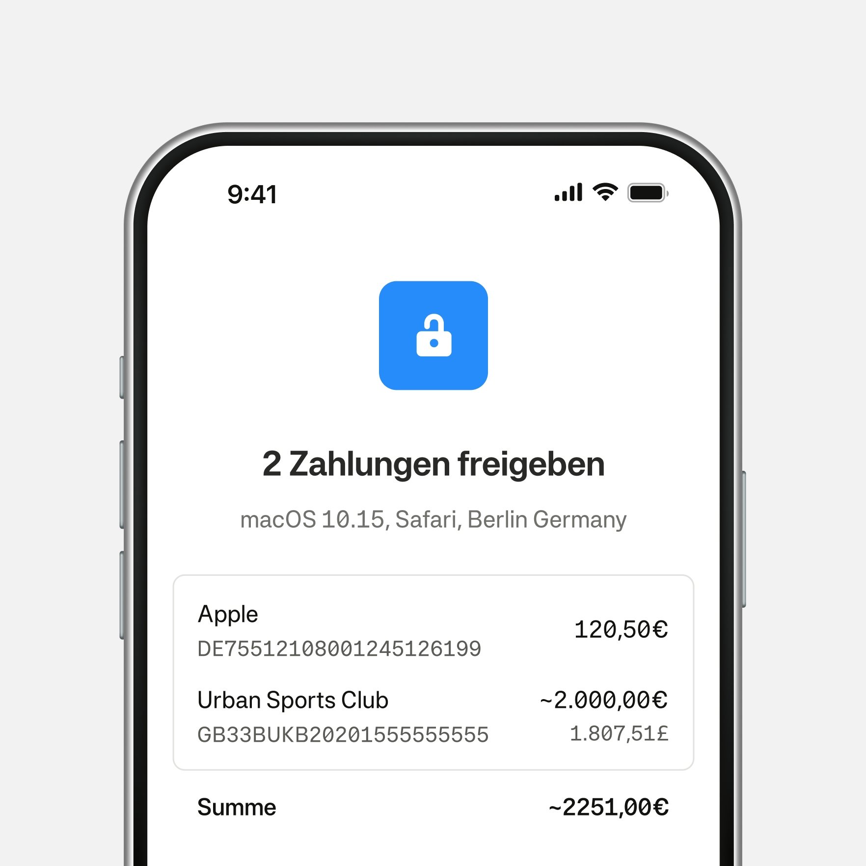 Dein Guthaben wird auf Treuhandkonten der Deutschen Bank sicher verwahrt. Außerdem profitierst du von benutzerdefinierten Zahlungsfreigaben und Zwei-Faktor-Authentifizierung.