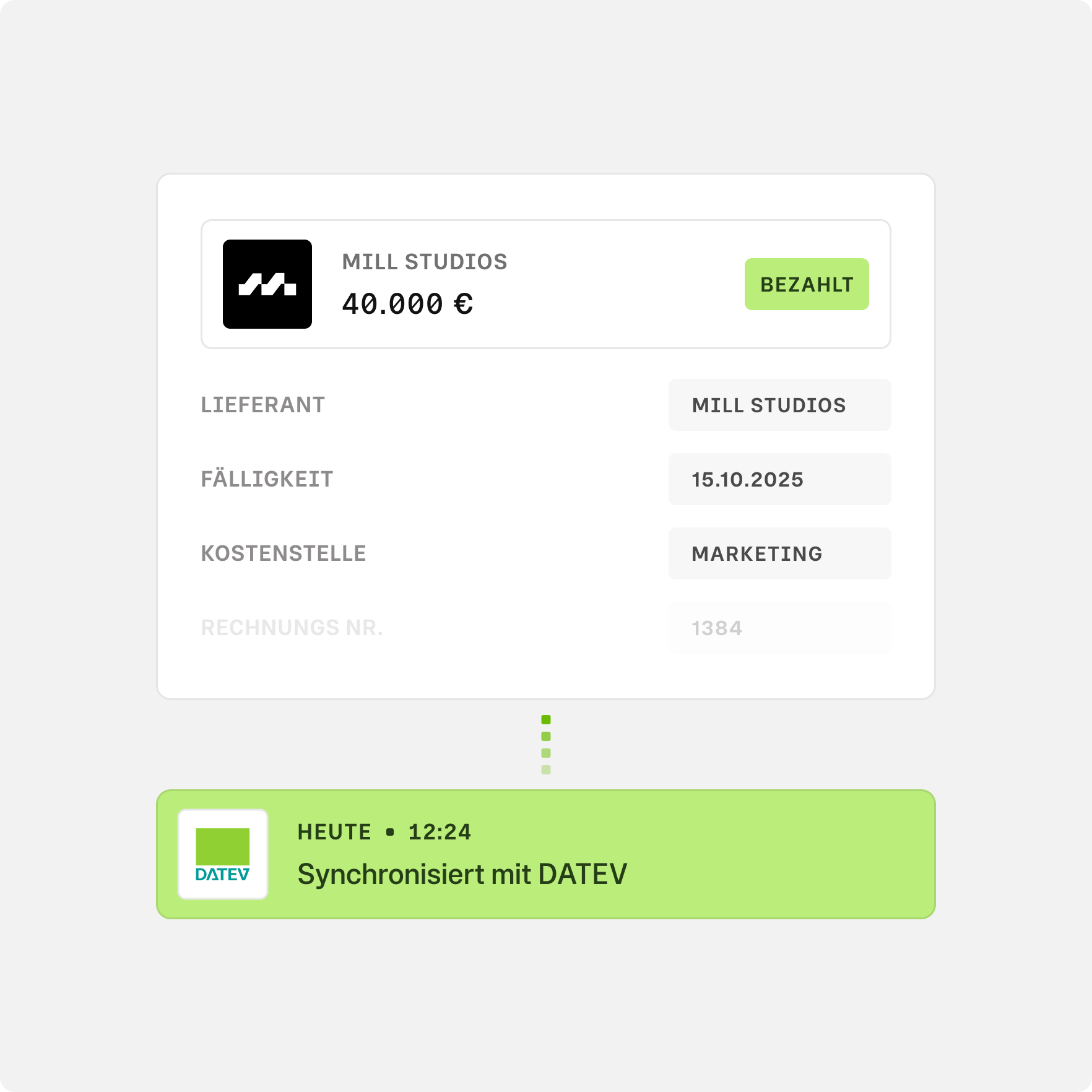 Zahlungsläufe nahtlos in deine Prozesse für Rechnungsmanagement und Mitarbeiterauslagen integriert.