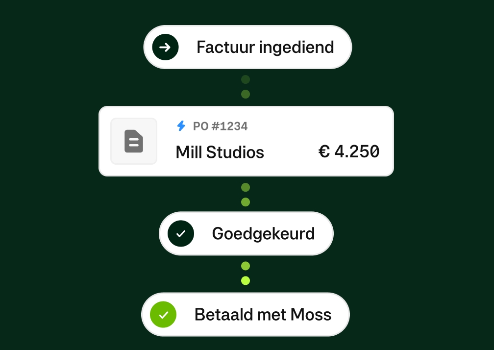 Elimineer knelpunten en optimaliseer de planning. Automatiseer het matchen, coderen en goedkeuren van facturen en betaal direct vanuit Moss.