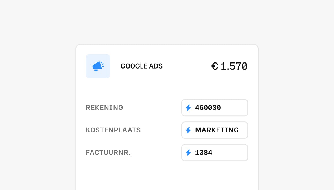 AI-gestuurde categorisatie die synchroniseert met je boekhoud- en ERP-software.