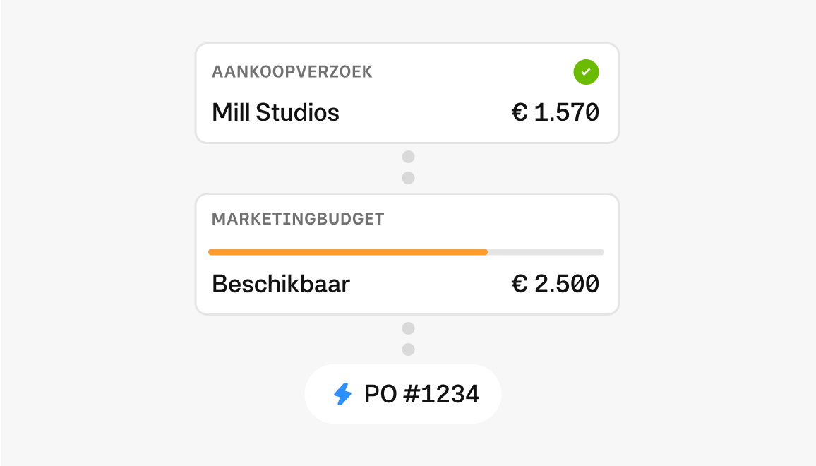 Inkooporders, goedkeuringen op maat, budgets op één plek. Je hebt controle over elke uitgave.