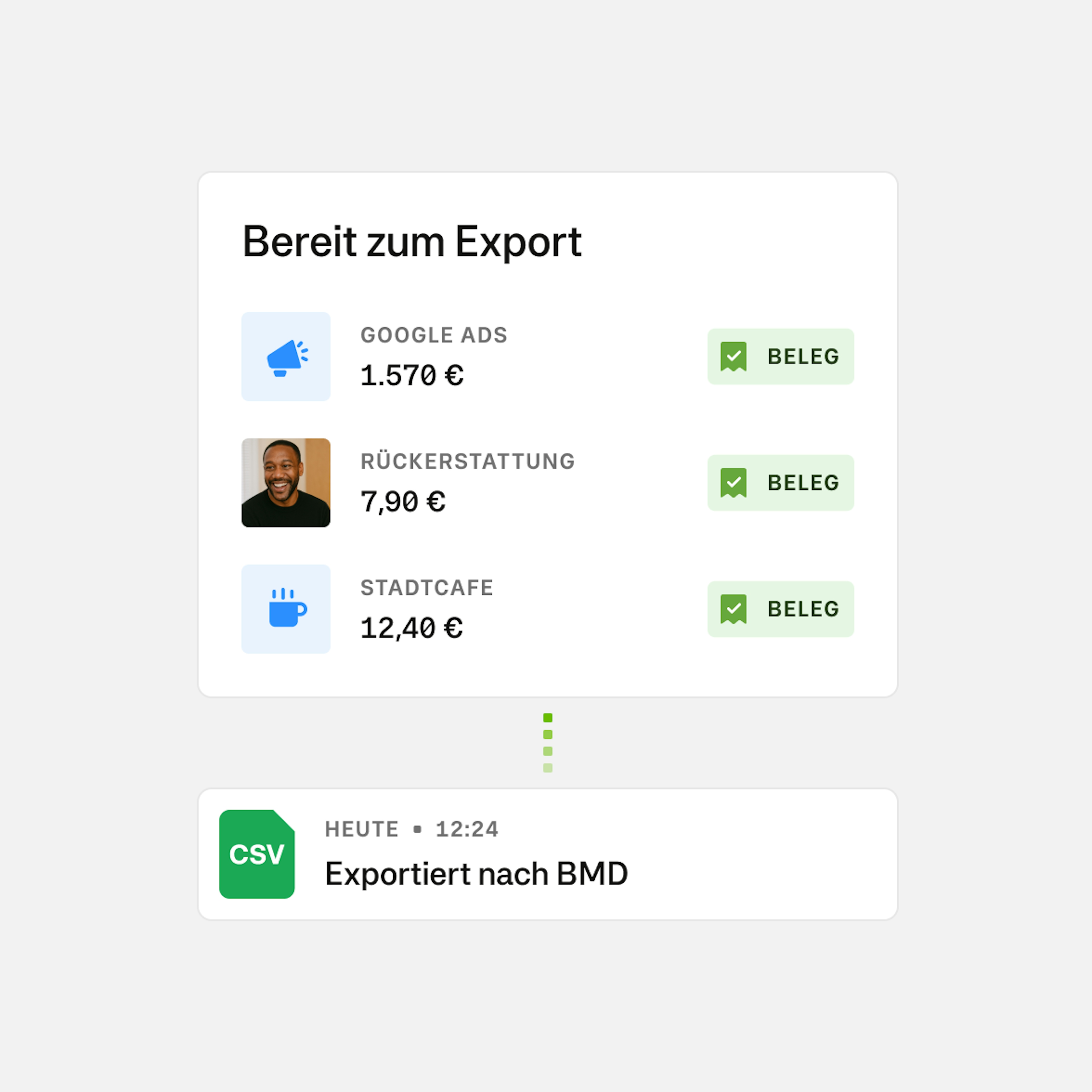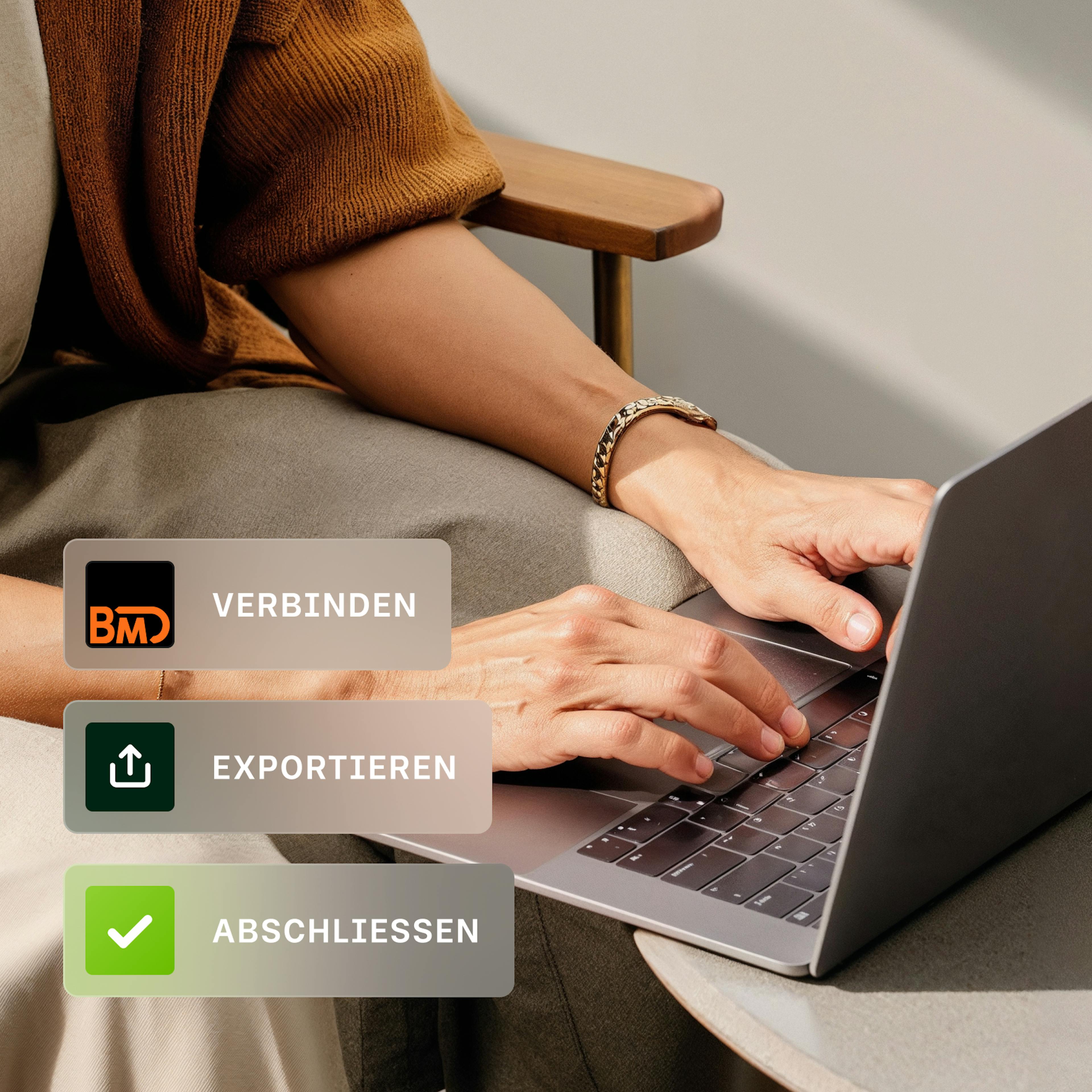 Erhalte vollständige und korrekt vorkontierte CSV-Dateien für den einfachen Import in BMD.