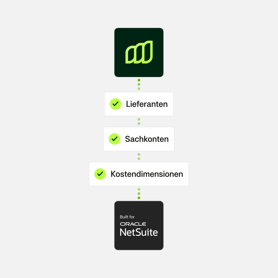 Offizielle SuiteApp-Integration für sichere Verbindung und langfristige Kompatibilität mit deinem NetSuite-Setup.