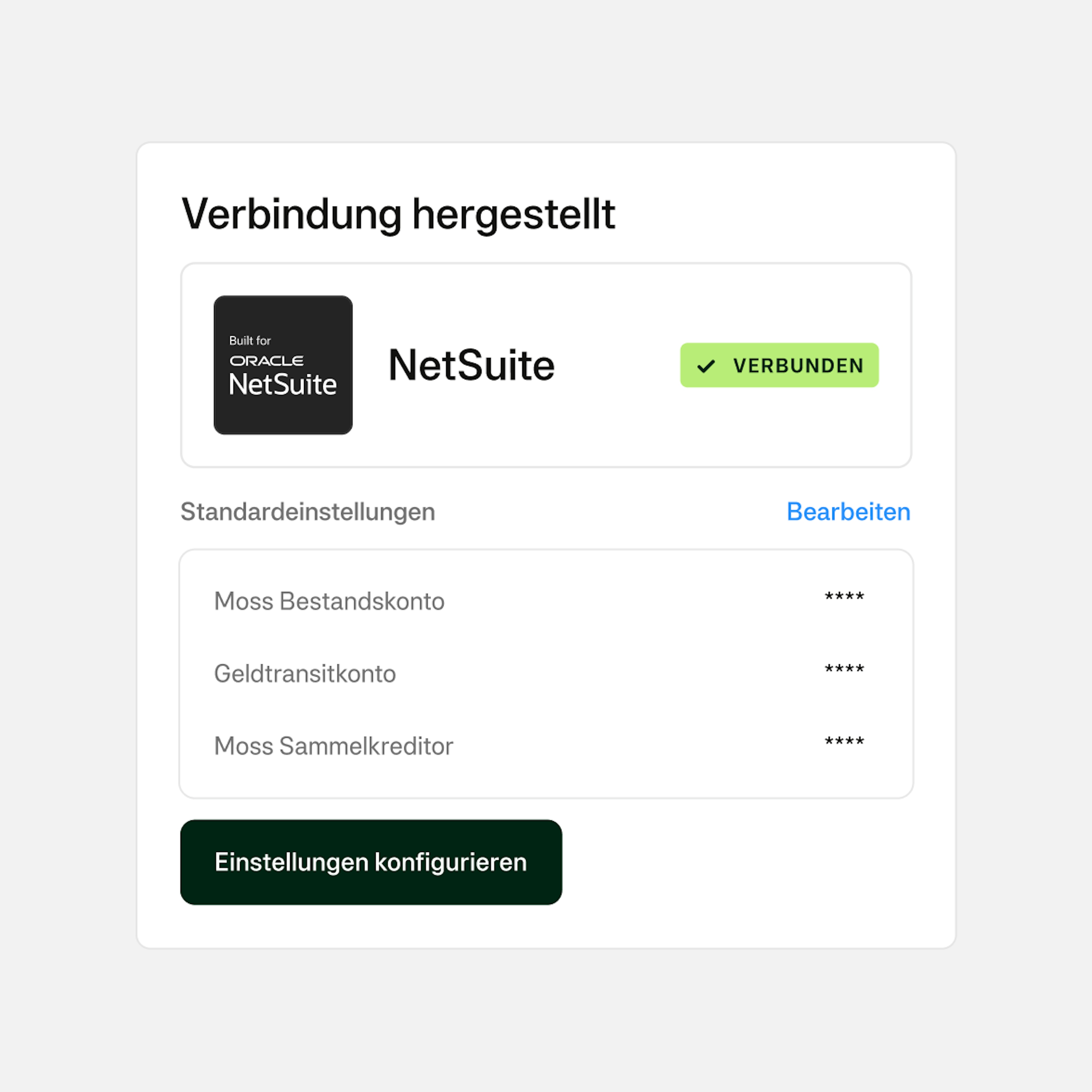 Die NetSuite Integration ist als Teil des Moss ERP-Add-ons verfügbar.