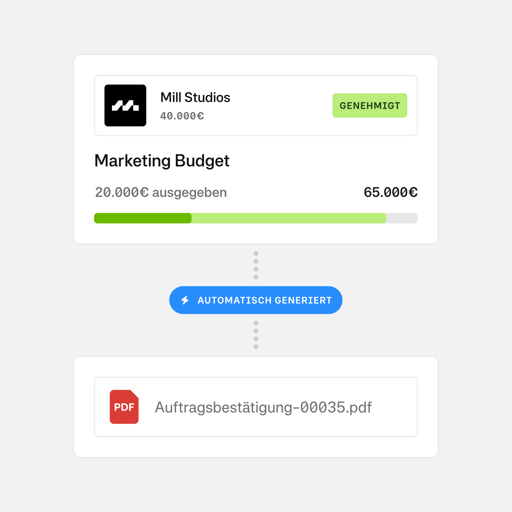 Wandle freigegebene Kaufanfragen automatisch in Bestellungen an Lieferanten um und berücksichtige geplante Ausgaben in der Budgetplanung.