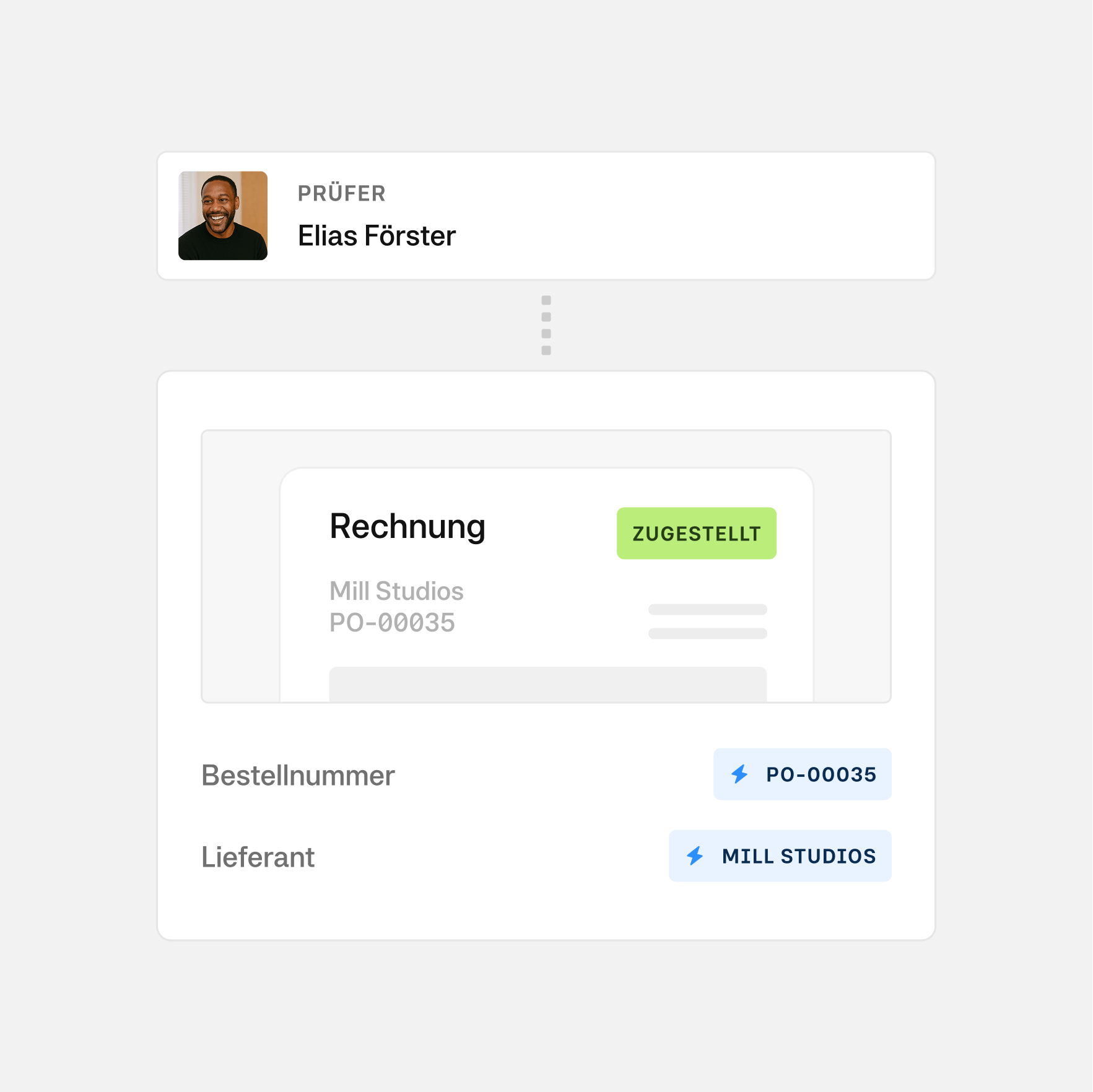 Die automatische Zuordnung von Rechnungen zu Bestellungen vereinfacht deine Arbeitsabläufe. Rechnungen können einfacher geprüft und Zahlungen schneller freigegeben werden.