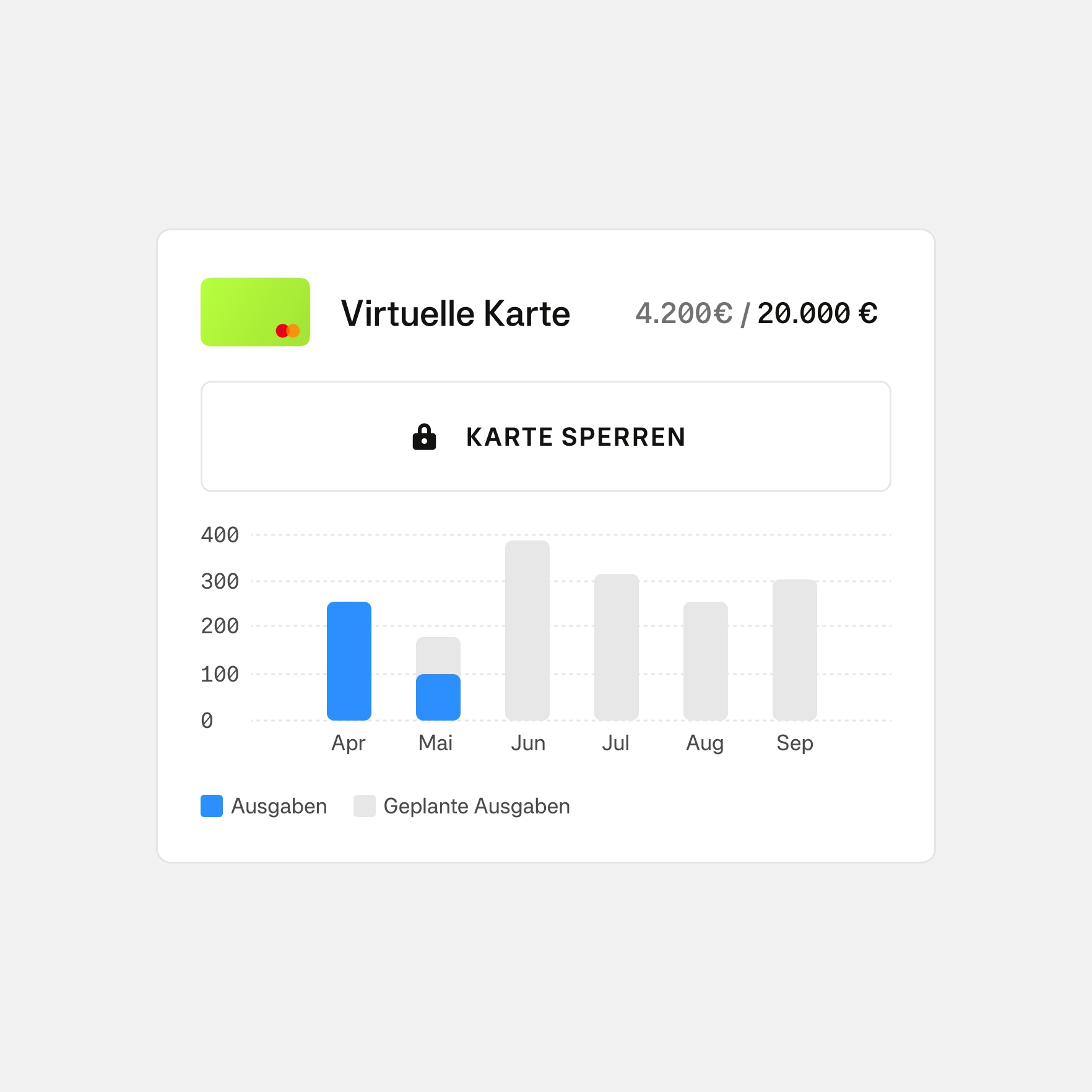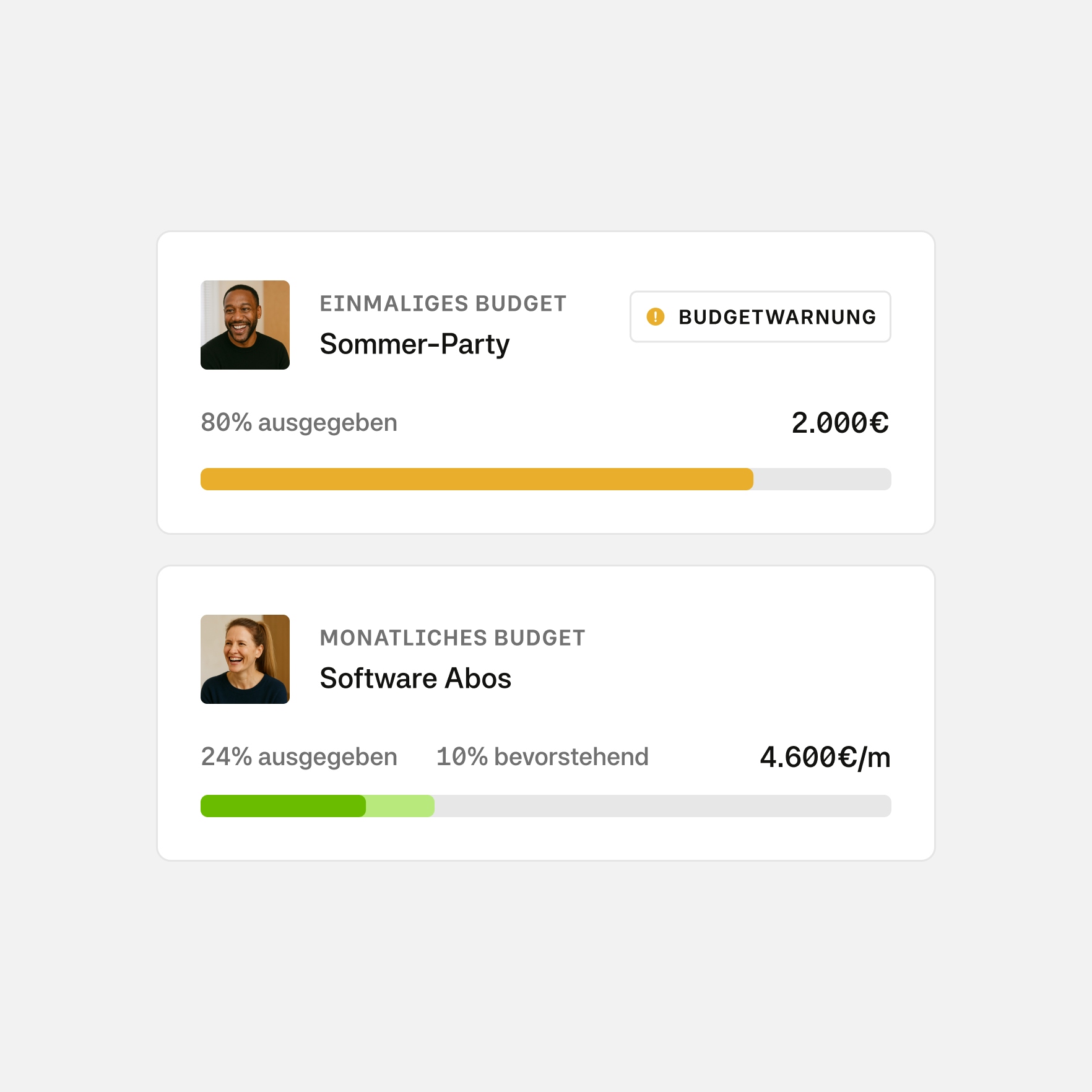 Erstelle Budgets mit automatischer Ausgabenzuordnung für Kartenzahlungen, Rechnungen, Auslagen und Abonnements. Konfigurierbar nach Abteilung, Kostenstelle und vielen weiteren Kriterien.