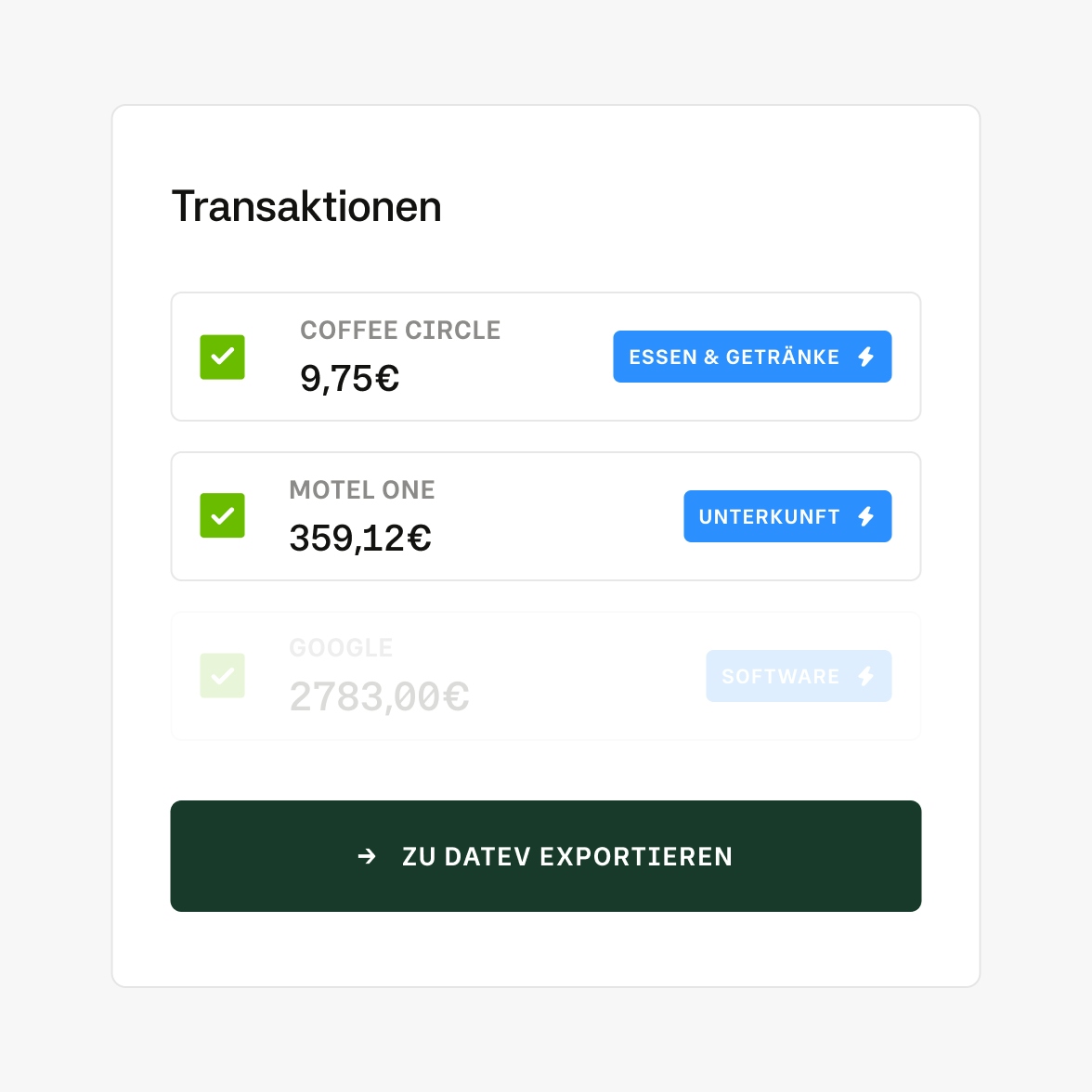- Direkter Export aller Transaktionen in dein Hauptbuch