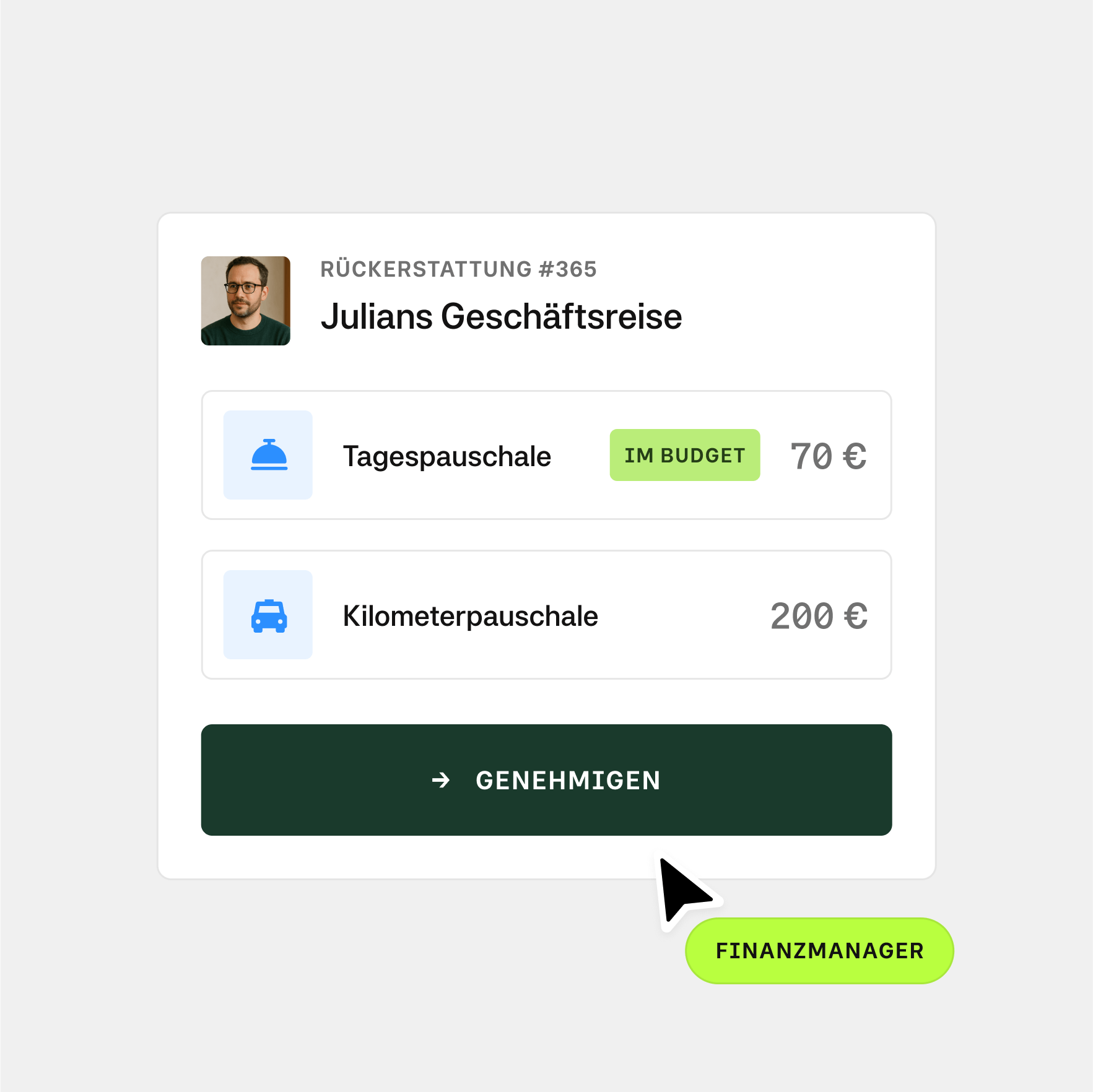 Belege werden automatisch angefordert und gesammelt, Freigaben gehen direkt an die richtige Person, und Ausgaben werden für dich gebündelt und dem richtigen Budget eingeordnet.