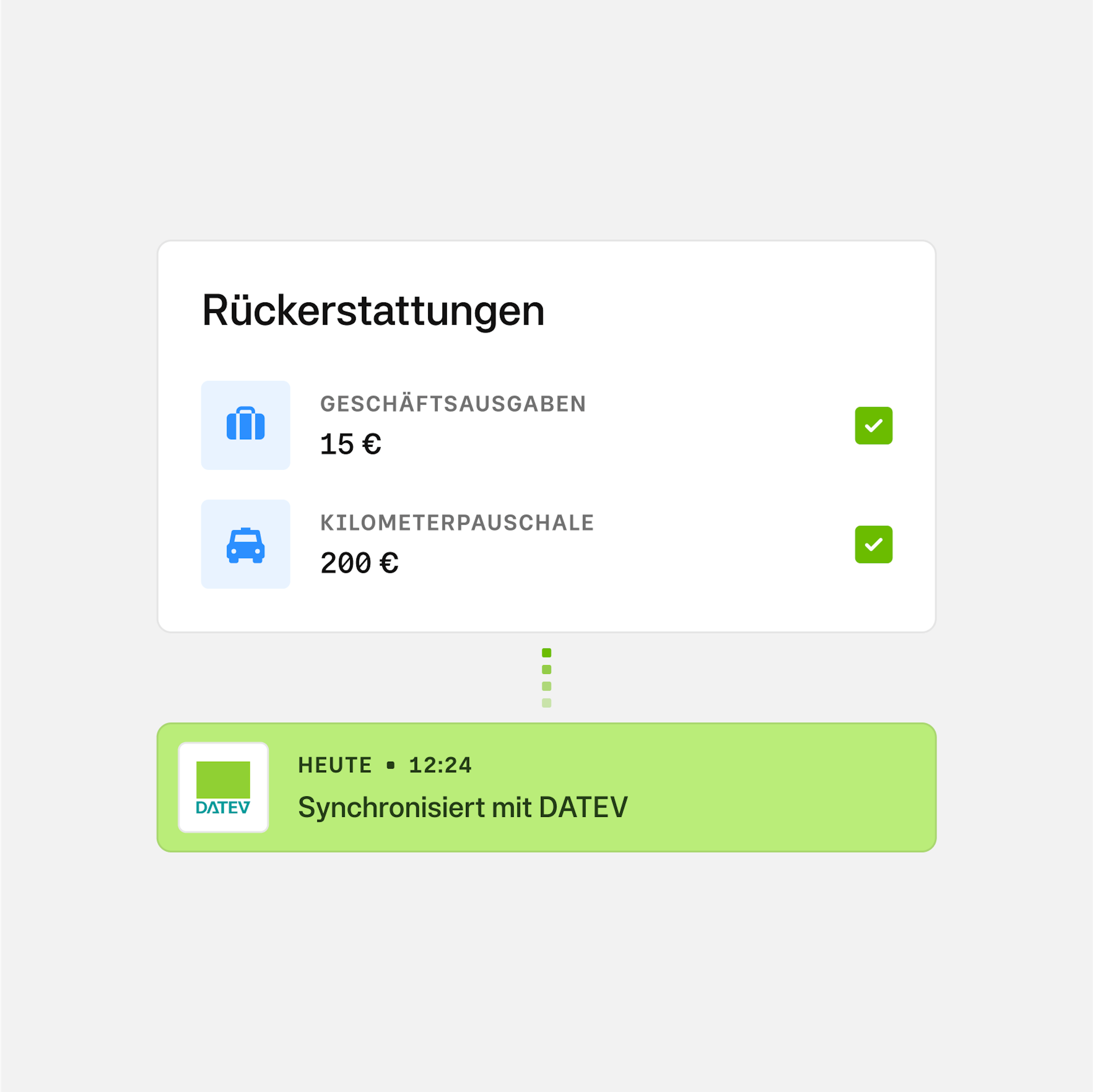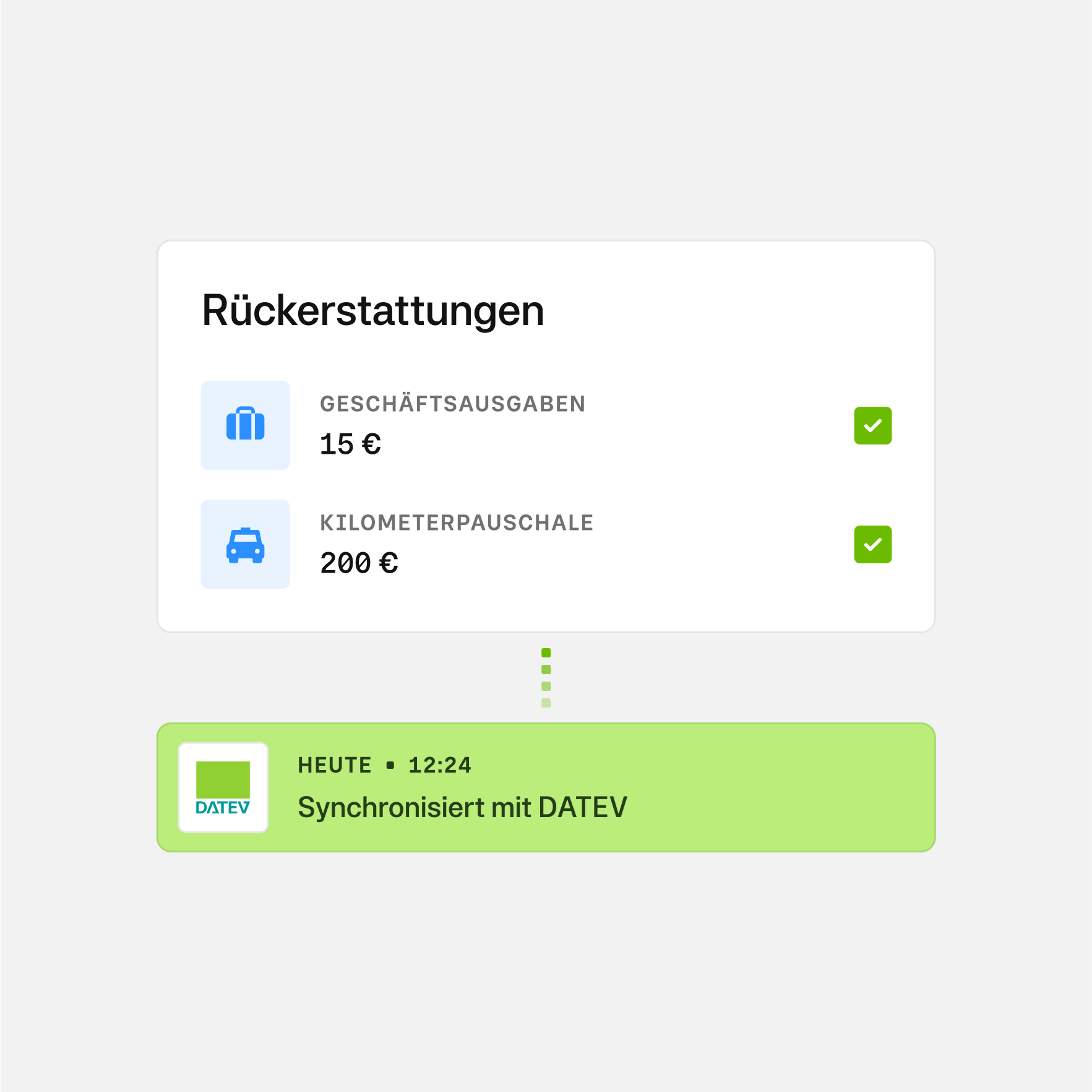 Erfassung, Vorkontierung und Synchronisierung von Spesen laufen automatisch und integriert mit deiner Buchhaltungssoftware.