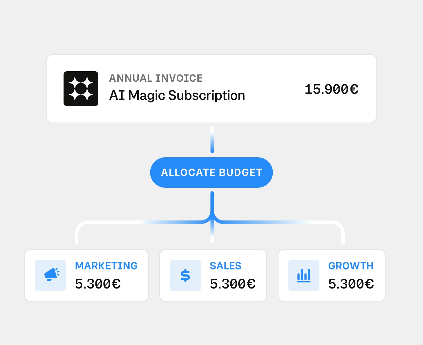 Manche Kosten lassen sich nicht einfach einem einzigen Budget oder einer Periode zuordnen. Jährliche Software-Abonnements, gemeinsame Dienstleistungen oder standortübergreifende Rechnungen erfordern oft zusätzliche Tabellen oder manuelle Korrekturen. Mit der neuen Funktion zur Budget-Aufteilung kannst du eine einzelne Ausgabe nun automatisch oder manuell auf mehrere Budgets, Perioden oder Kostenstellen verteilen. So wird zum Beispiel ein jährlich abgerechnetes Software-Abo automatisch auf die Budgets der einzelnen Monate verteilt, während eine Rechnung für Reinigungs- oder IT-Services anteilig auf die Budgets von Marketing, Vertrieb und Operations aufgeteilt wird.