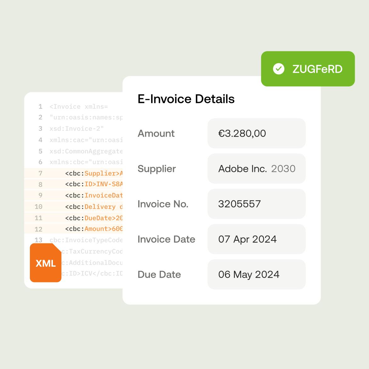 End-to-end automation for your accounts payable with Moss. XRechnung & ZUGFeRD support and secure archiving built for compliance with German regulations.