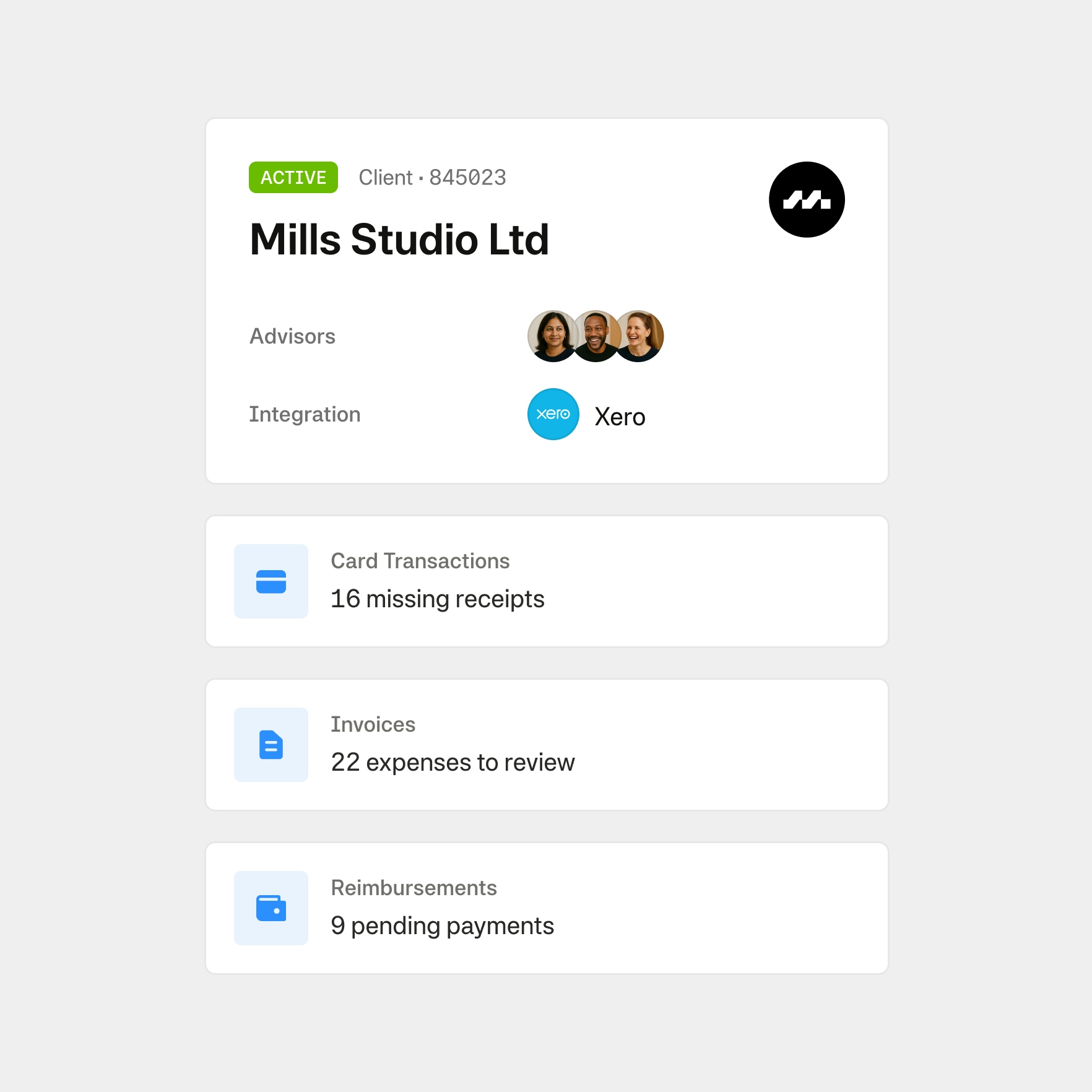 Bring together cards, reimbursements, invoice approvals, and AP—so your clients stay in control, and you get complete, accurate data straight into Xero, QuickBooks or NetSuite.