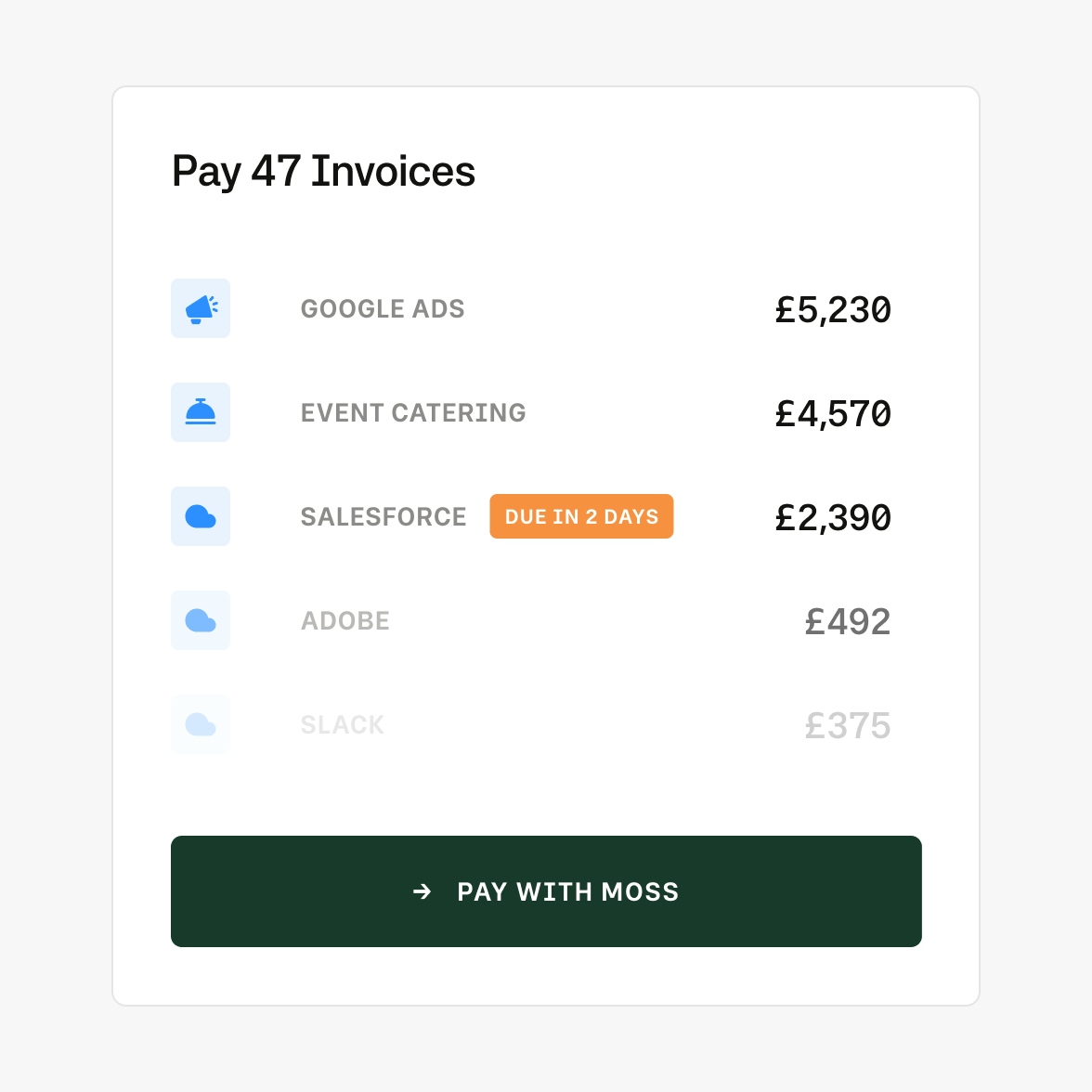 Moss uses advanced OCR and AI to automatically capture and categorise invoice data, streamlining approvals and payments.