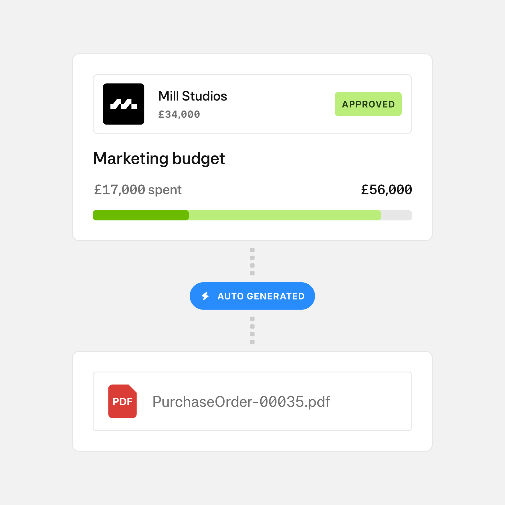 Automatically generate purchase orders from approved purchase requests, ready to send to suppliers.