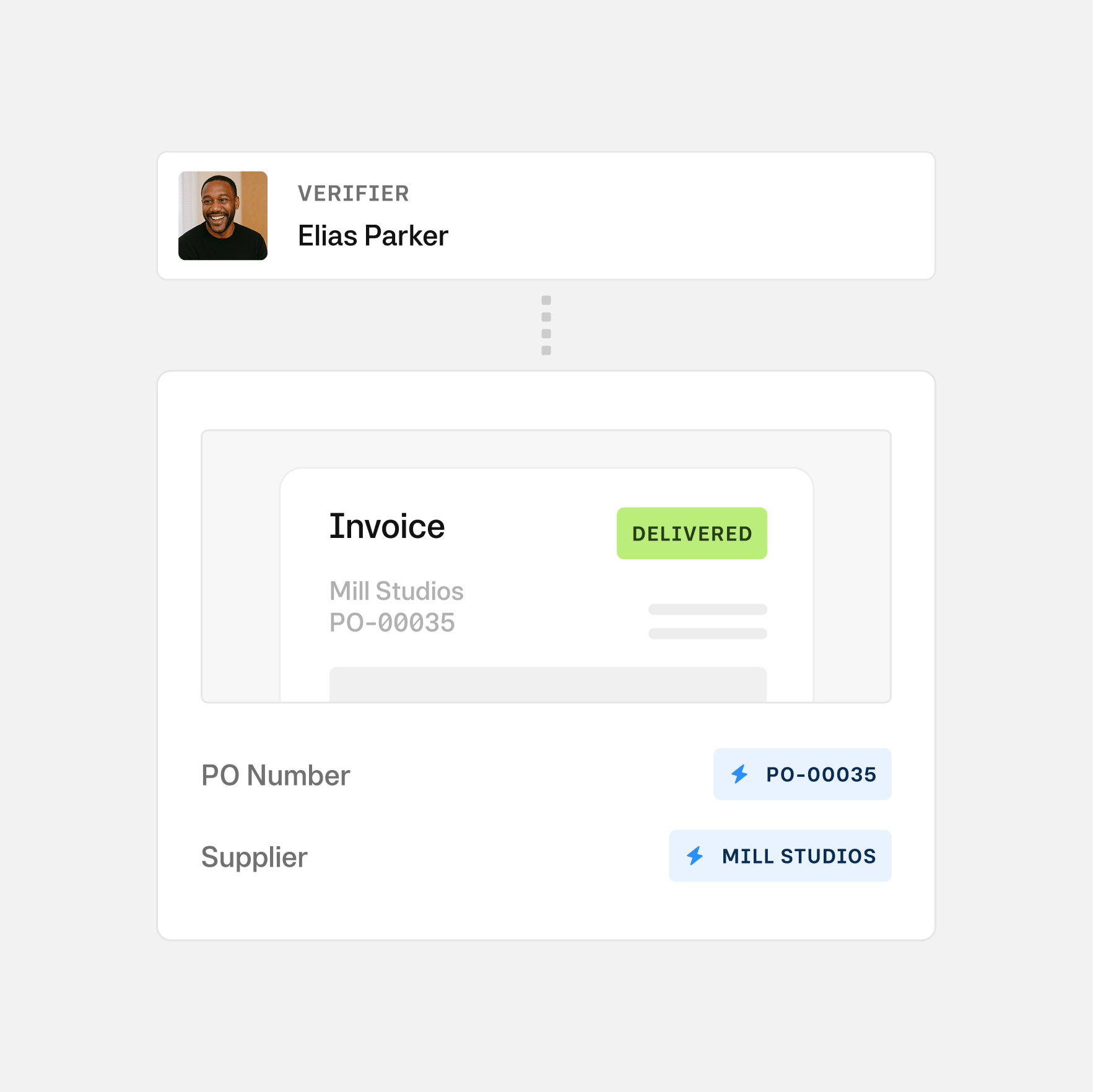 Automatically match incoming invoices with purchase orders, and verify delivery before releasing the payment.