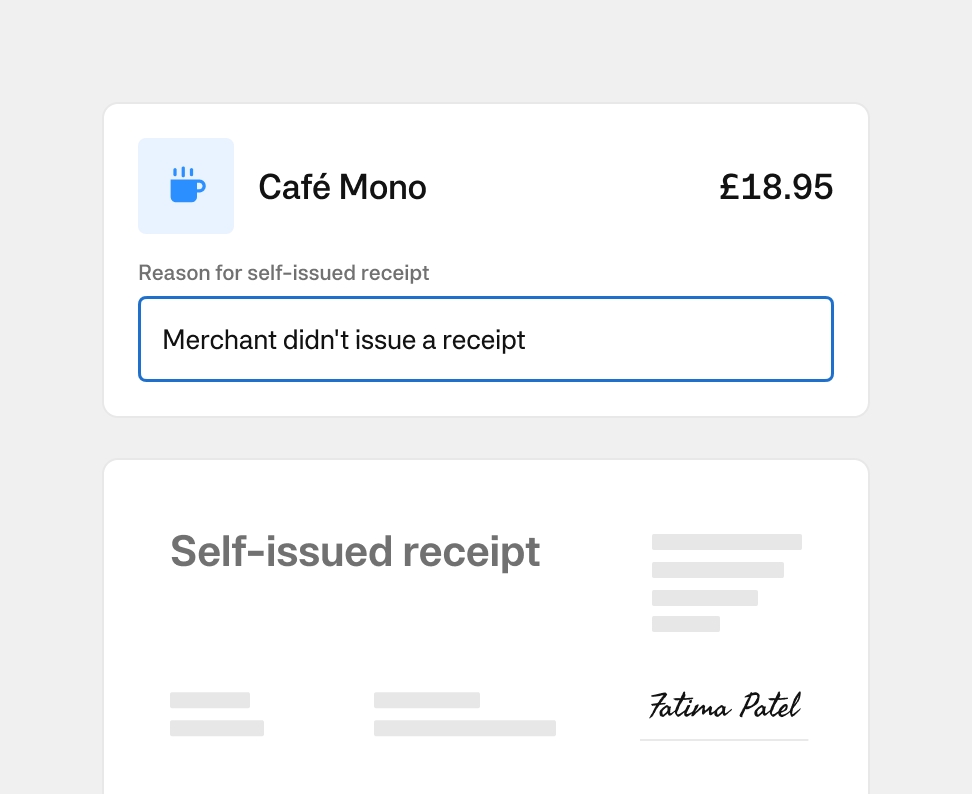 Create self-issued receipts directly in Moss whenever the original document is missing or a receipt has never been provided. Ensure that you stay compliant to your local law, by providing a receipt for each transaction. Simply select “Receipt not available”, fill in the short form, and Moss generates a compliant PDF receipt that’s automatically attached and exported like any other receipt.