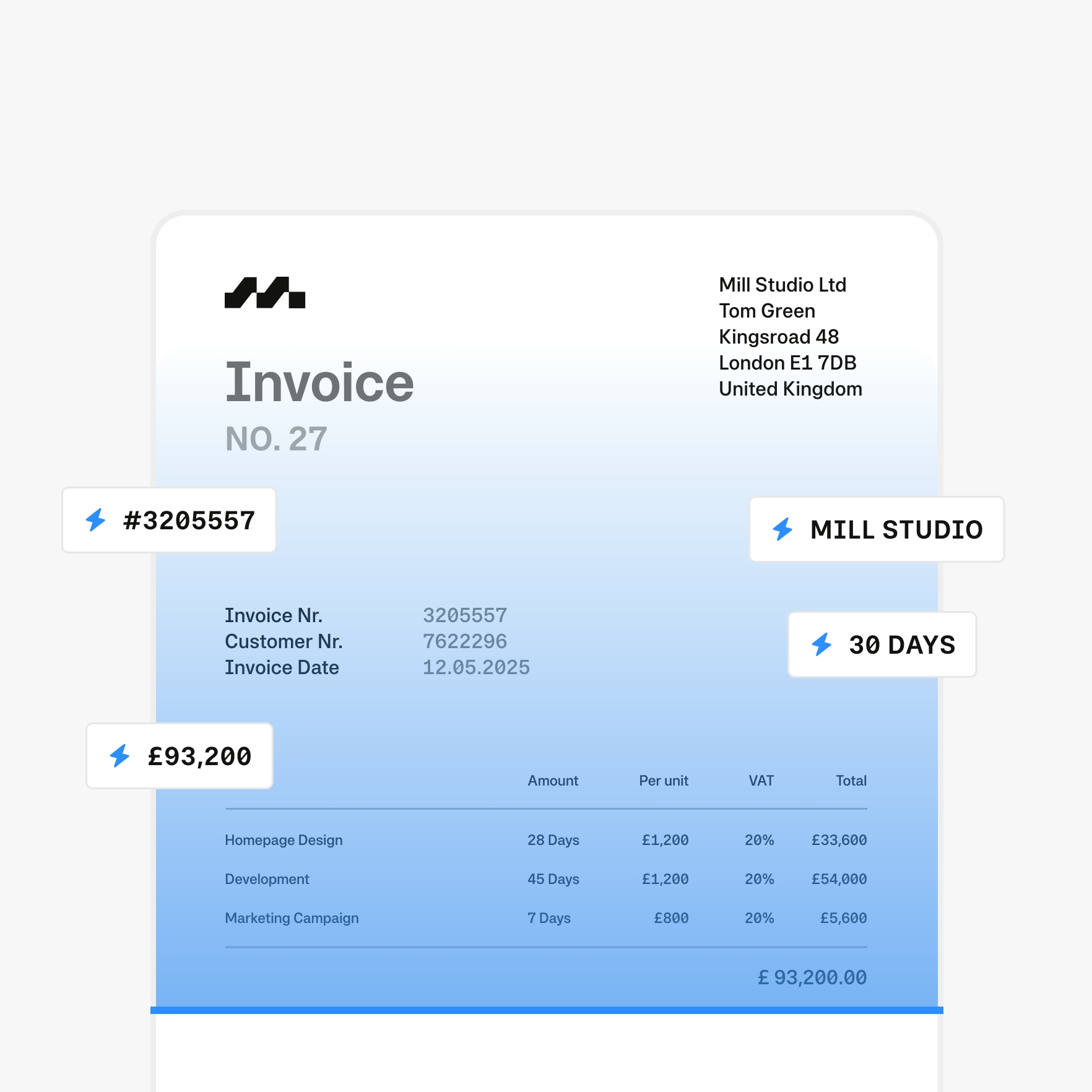"Invoices and card spend are automatically matched, coded, and enriched with VAT, supplier data, and payment terms—ready for export to your accounting system.