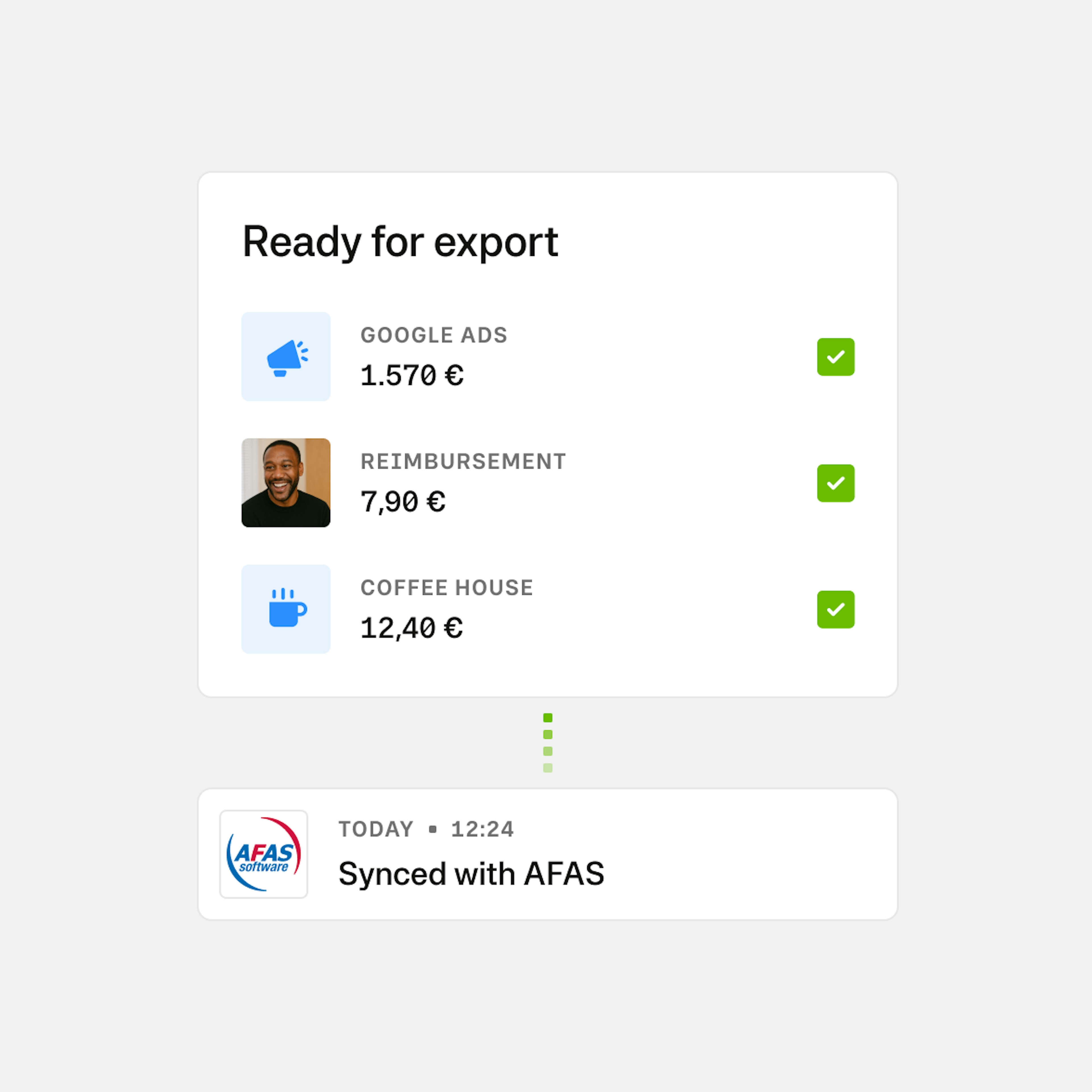 Connect Moss to AFAS to sync card transactions, supplier invoices and employee reimbursements. Export your spend data, including reconciliations, with one click and free your team from manual work.