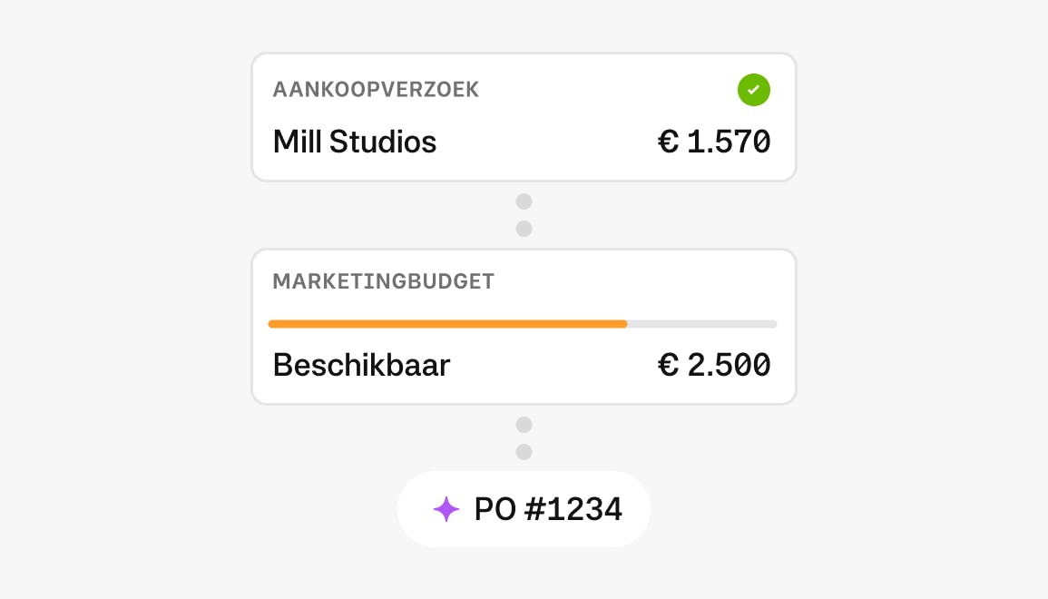 Inkooporders, goedkeuringen op maat, budgets op één plek. Je hebt controle over elke uitgave.