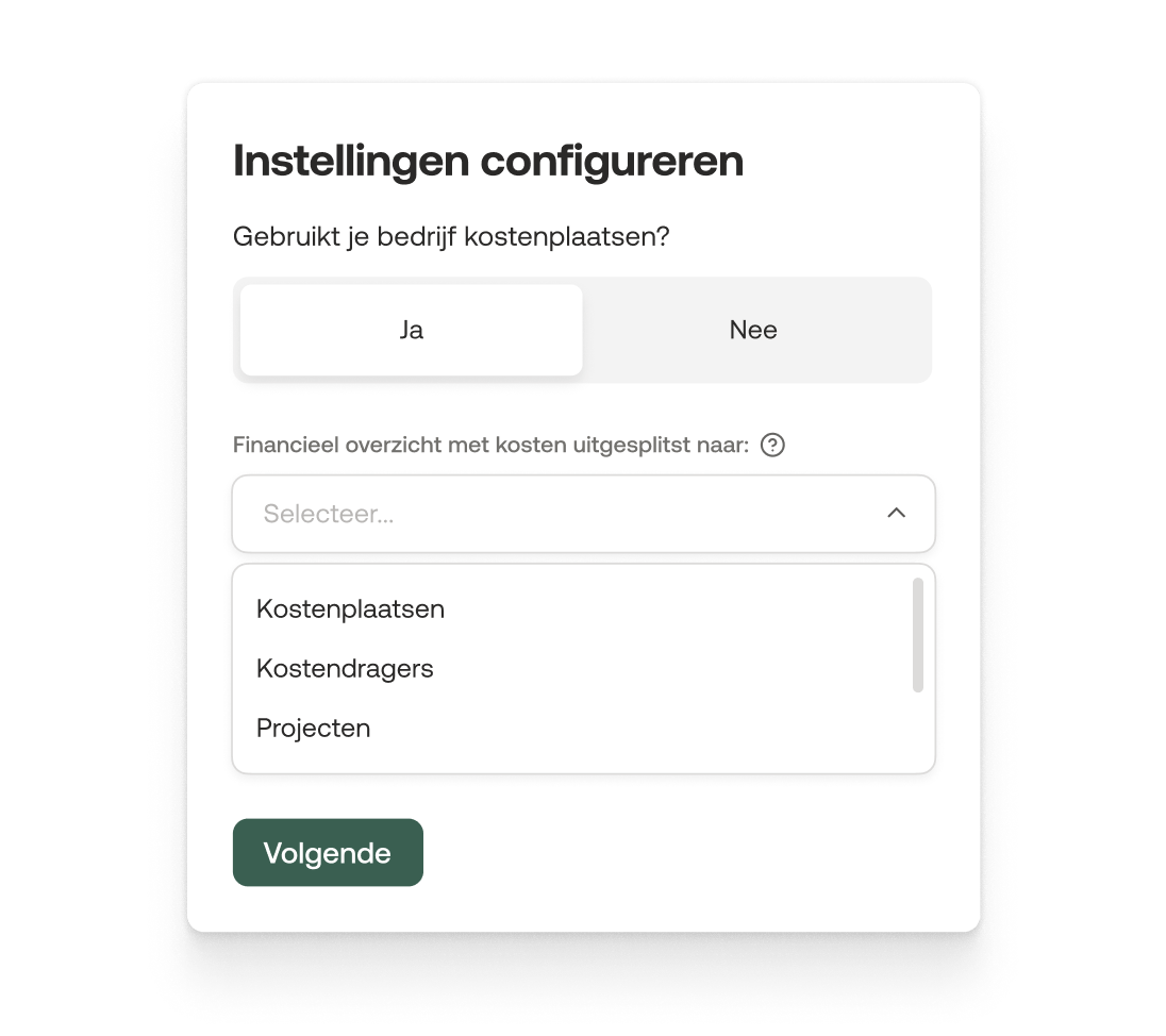 Selecteer de Exact Globe-accounts voor het automatiseren van reconciliatieoverzichten en voeg je kostendimensies van Exact Globe aan Moss toe.