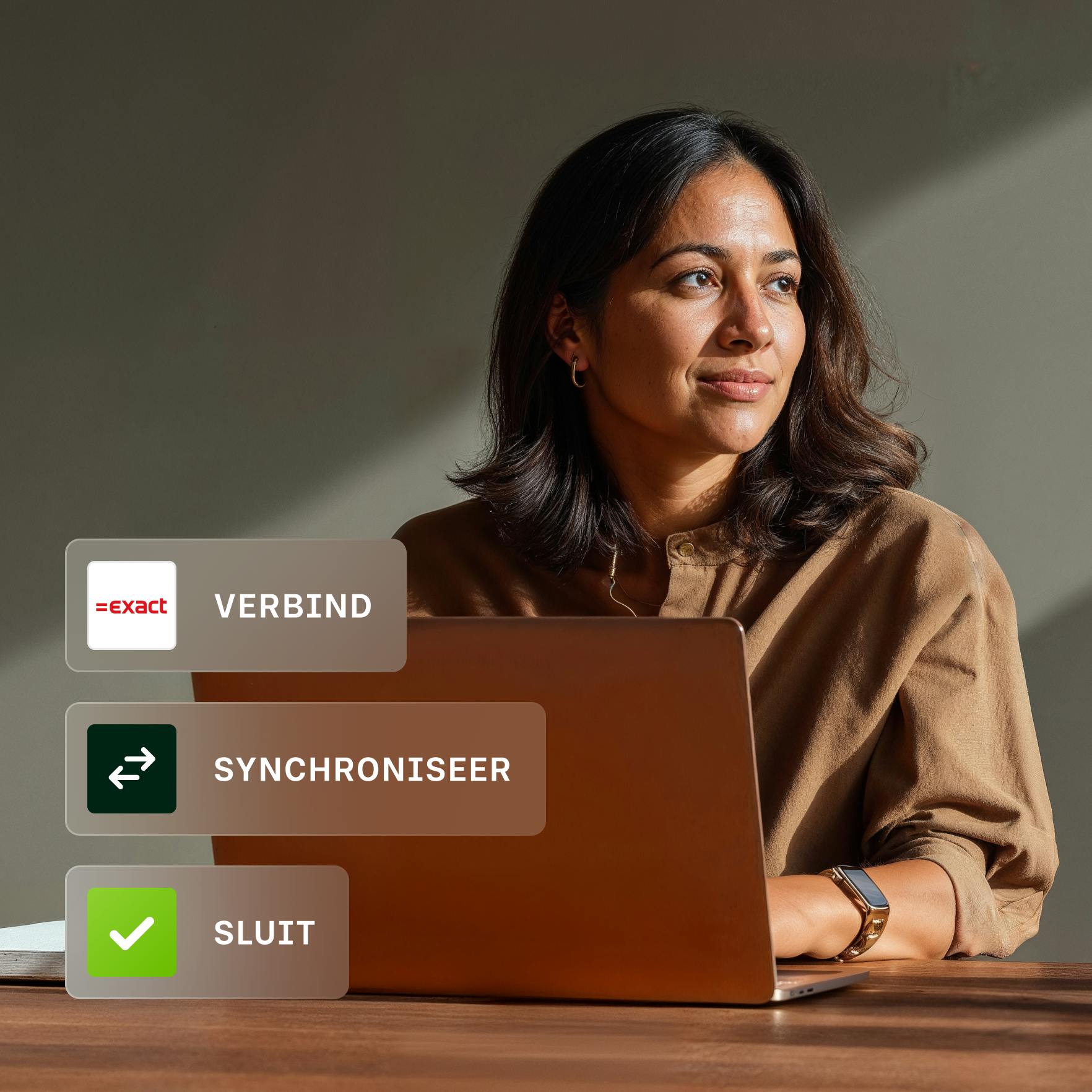 Transacties en ondersteunende documenten worden opgeslagen in Moss en onder jouw toezicht geëxporteerd naar Exact Online. Dit zorgt voor een transparante, controleerbare workflow.