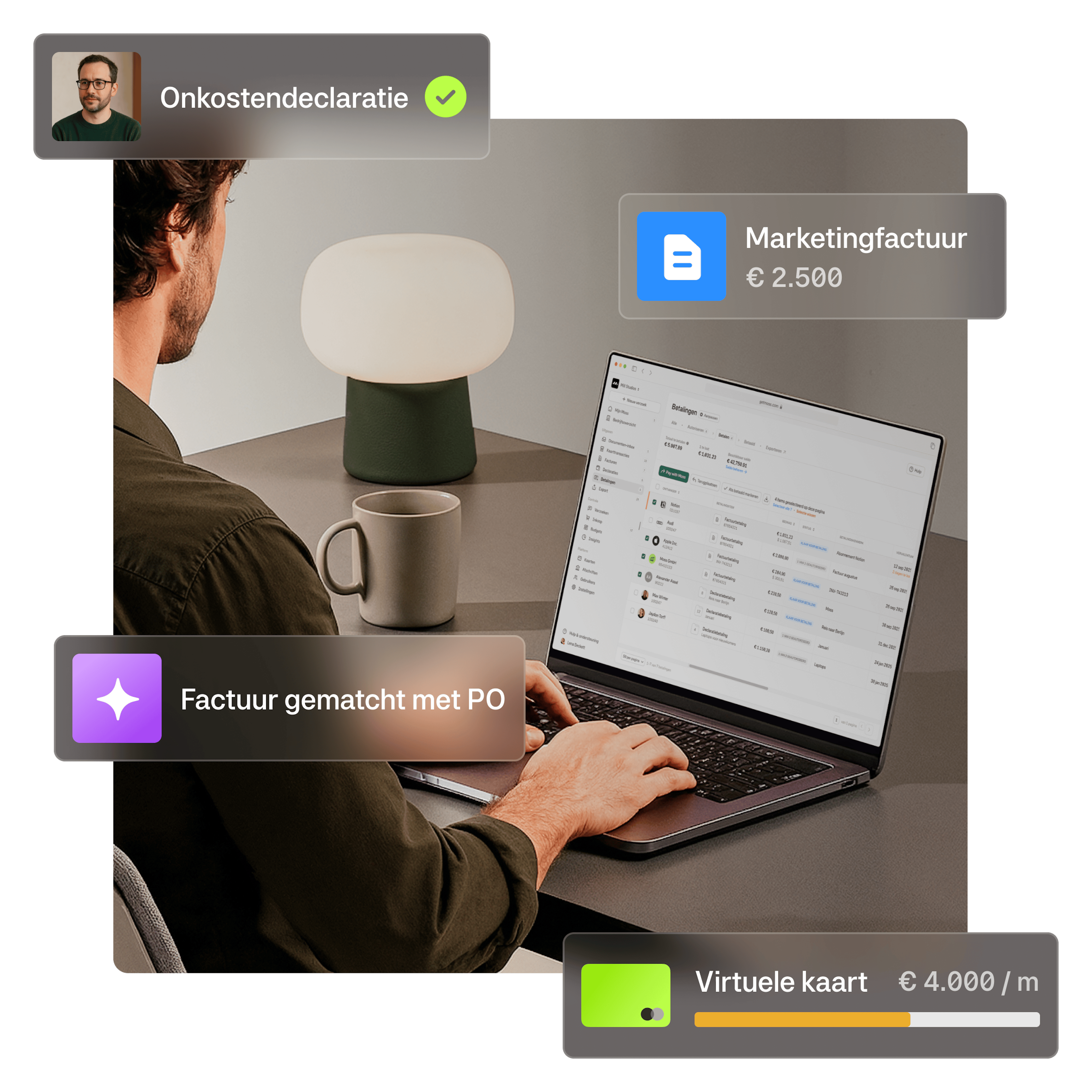 Stop met het gehannes met tools en handmatige taken. Moss centraliseert zakelijke uitgaven, zodat je team zich kan concentreren op impact.