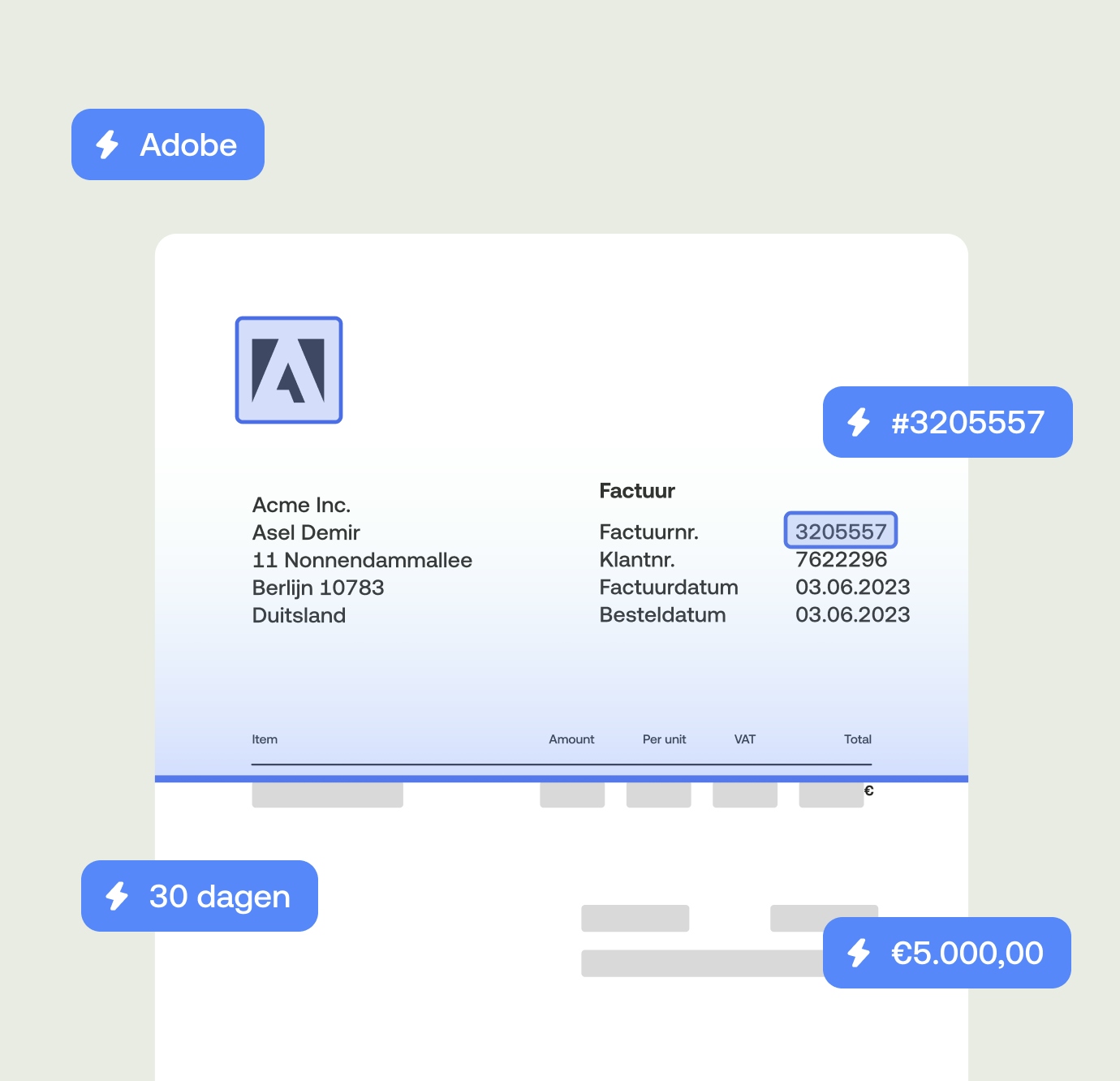 - Categoriseer uitgavenposten automatisch: van nominale codes en btw-tarieven tot regelsplitsingen, betalingsvoorwaarden en meer