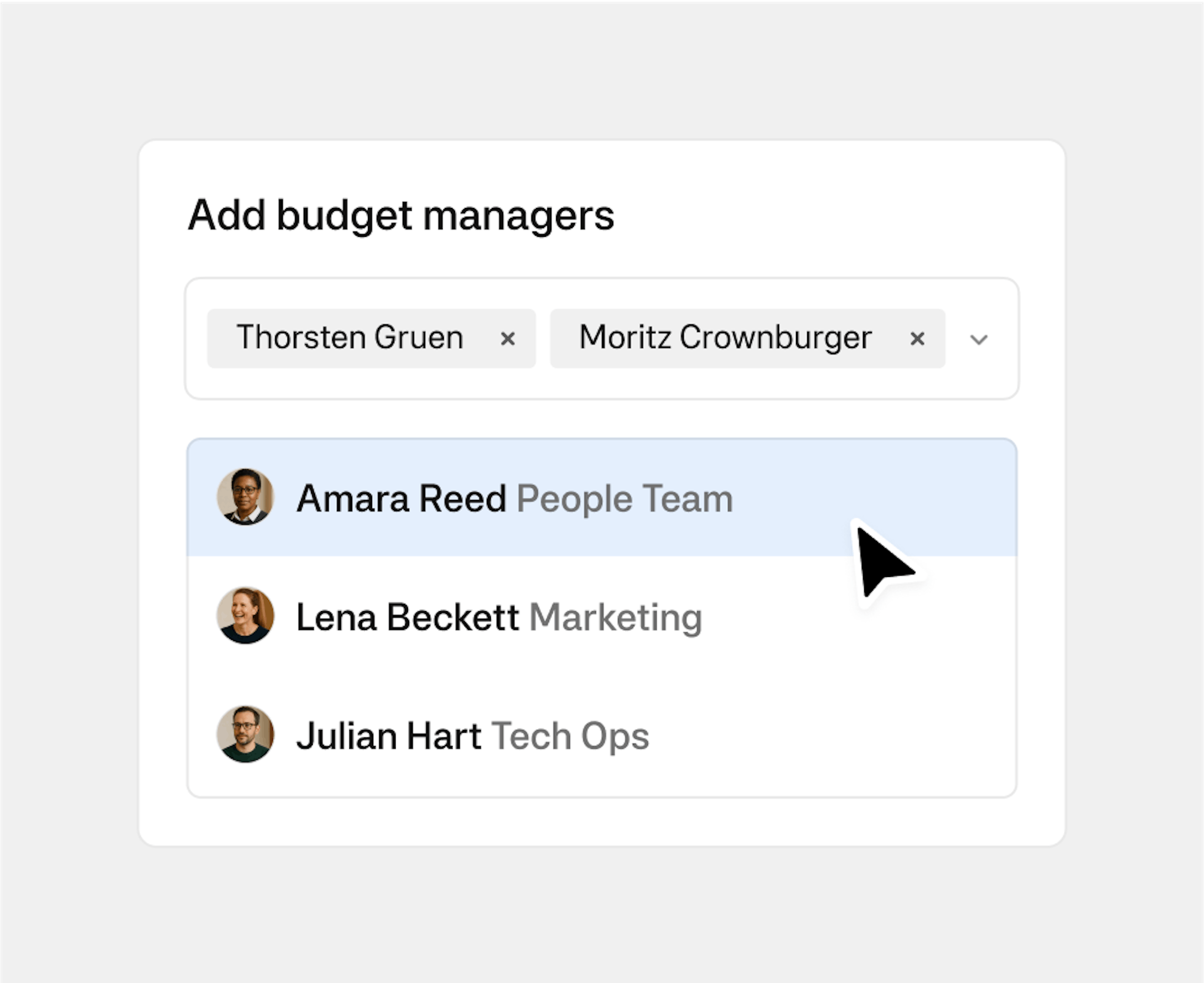 Have your budgets managed by several people instead of just one, giving organisations greater flexibility and transparency in spend oversight. Each budget manager can view, export, and receive notifications about the budgets they manage, while their own managers also retain visibility. This reflects how budgeting works in the real world—where oversight is often shared across teams.